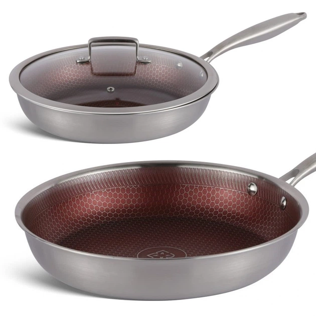 🍳 Non-Stick Honeycomb Interior — Special honeycomb texture reduces food sticking, allows cooking with little or no oil, and makes flipping food easy while also protecting the coating from scratches.